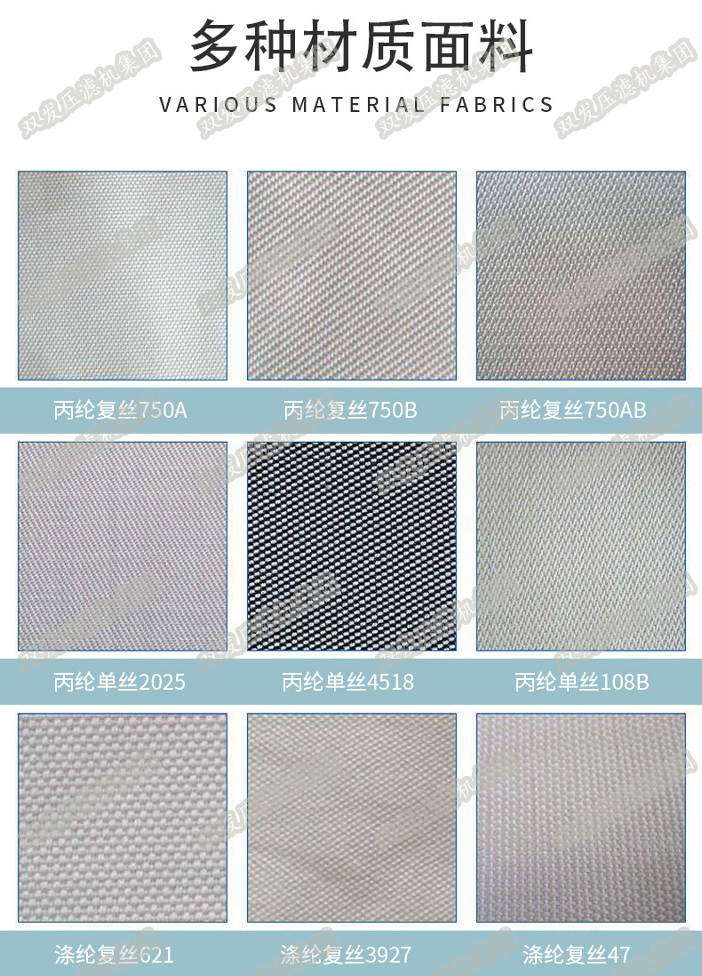 壓濾機濾布選型尤為重要,想要選好壓濾機濾布,首先需要的就是了解物料的酸堿性、溫度、濃度等。物料性質(zhì)掌握之后,就可以選擇相對應(yīng)的濾布材質(zhì),濾布材質(zhì)可分為:滌綸、丙綸、錦綸或維綸。選錯型號不僅會影響濾布壽命,還會直接影響到最終過濾效果。